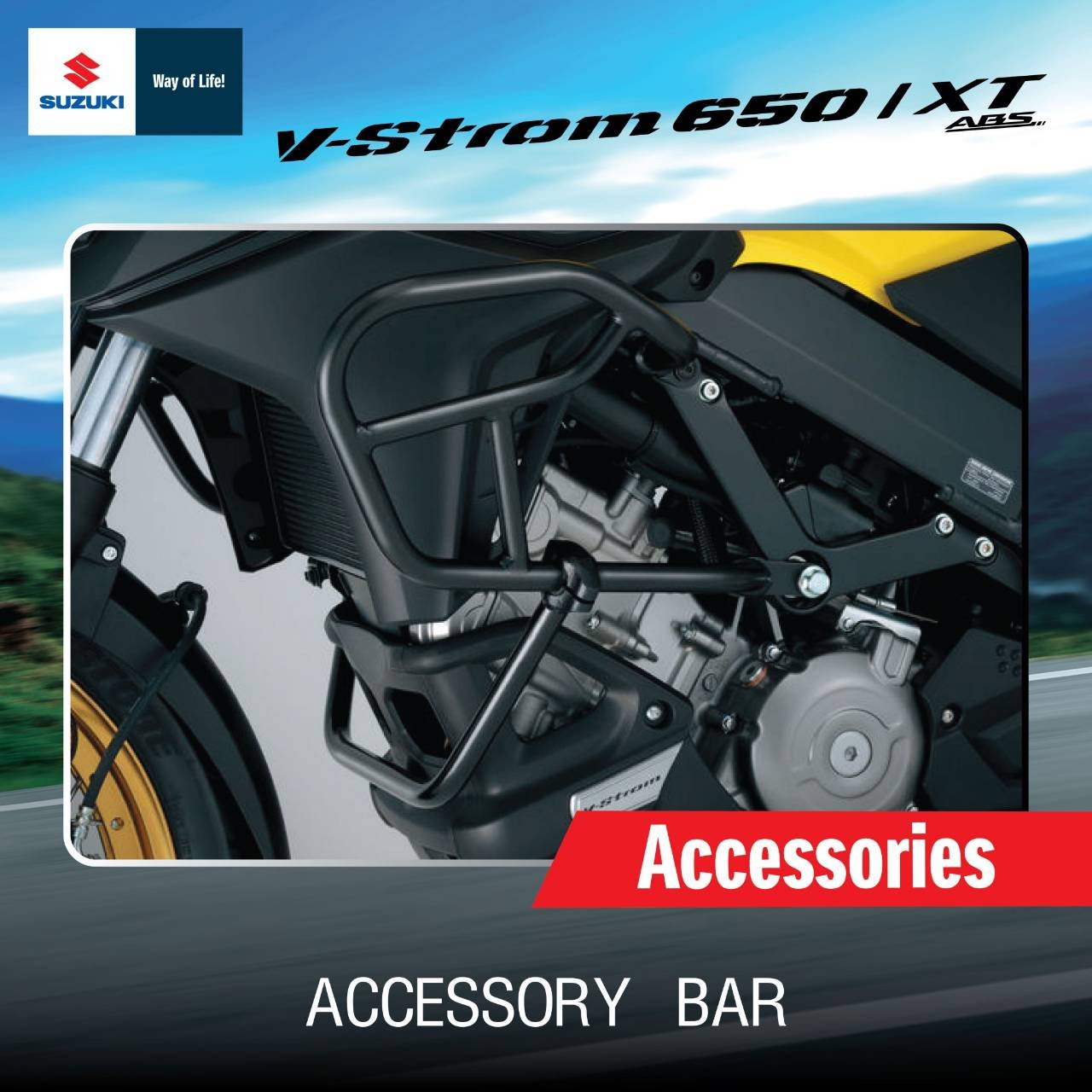 อุปกรณ์เสริมหรือ Accessories เหล่านี้ จะเป็นตัวป้องกันรอยตามจุดต่างๆที่อาจเกิดร่องรอยหรืออุบัติเหตุได้ นอกจากนั้นยังเป็นแฟชั่นในสายของรถทัวร์ริ่งด้วยเช่นกัน นอกเหนือจากที่ได้กล่าวมาแล้ว บางท่านอาจจะมีการเพิ่มเติมในส่วนกล่องเก็บของด้านบน (ปิ๊บ) หรือกระเป๋าด้านข้างเข้าไปด้วย ก็จะยิ่งทำให้ดูเป็นการเดินทางที่ครบเครื่องมากขึ้น สำหรับอุปกรณ์ที่ได้กล่าวมาในข้างต้นนั้นเป็นเฉพาะรุ่นของ Suzuki V-Strom 650/XT