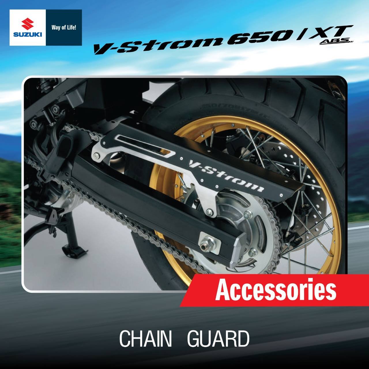 อุปกรณ์เสริมสำหรับรถสายทัวร์ริ่งโดยเฉพาะ Suzuki V-Strom 650/XT นอกจากรูปทรงที่สร้างขึ้นมาเพื่อความท้าทายในทุกเส้นทางแล้ว อีกหนึ่งแนวทางที่หลายคนชื่นชอบและอยากจะเสริมความสะดวกสบายเพื่อการเดินทางโดยเฉพาะ คือการติดอุปกรณ์เสริมเข้าไปที่ตัวรถ เพื่อเพิ่มความสะดวกสบายในการเดินทางและการขับขี่ อุปกรณ์ต่างๆเหล่านี้เป็นการเสริมเสน่ห์ให้กับรถดูดุดันและเป็นรถที่ใช้สำหรับเดินทางท่องเที่ยวมากขึ้น อุปกรณ์สำหรับรถจักรยานยนต์รุ่น Suzuki V-Strom 650/XT มีครบทุกส่วนของตัวรถไม่ว่าจะเป็น สติ๊กเกอร์กันรอยลายเคฟล่าที่ถังน้ำมัน, กระเป๋าคาดถังน้ำมัน, กันแคร้งใต้เครื่อง, ตัวรองขาตั้ง ทั้งแบบขาตั้งเดี่ยวและขาตั้งคู่, ตัวกันโซ่, แคชบาร์ และตัวกันล้ม เป็นต้น
