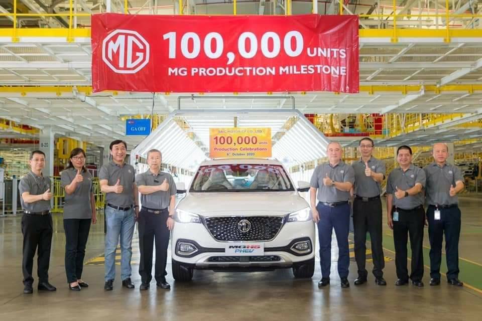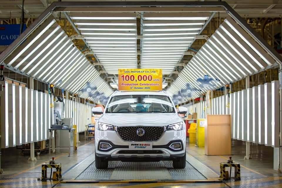 เมื่อเร็วๆ นี้ โรงงานผลิตรถยนต์เอ็มจีในประเทศไทยได้มียอดการผลิตสะสมครบ 100,000 คัน นับตั้งแต่การผลิตรถยนต์เอ็มจีรุ่นแรกในปี พ.ศ. 2557 โดยได้ผลิตรถยนต์เอ็มจีรุ่นต่างๆ ไปแล้ว 8 รุ่น ครอบคลุมทั้งรถยนต์นั่ง ได้แก่ MG6, MG 5, MG GS, MG 3, MG ZS, MG HS และรถกระบะ MG EXTENDER ซึ่งล่าสุดได้เริ่มผลิตรถยนต์ NEW MG HS PHEV รถยนต์ปลั๊กอินไฮบริดรุ่นแรกของเอ็มจี ซึ่งเตรียมเปิดตัวอย่างเป็นทางการในประเทศไทย และจัดแสดงต่อสาธารณชนเป็นครั้งแรก ที่งาน Fast Auto Show Thailand 2020 ในวันที่ 28 ตุลาคมนี้