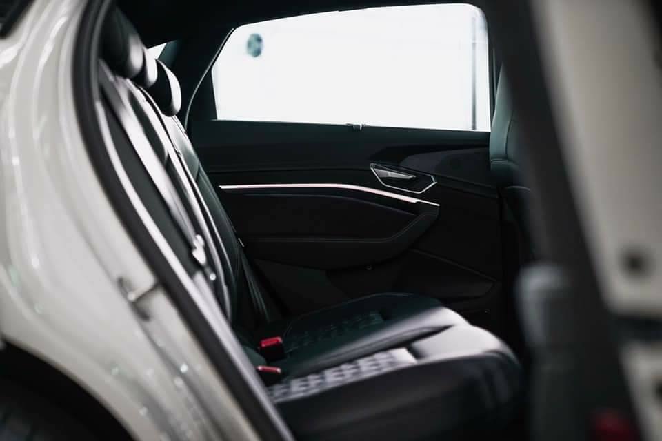 หลังคาเป็นแบบพาโนรามิคเลื่อน เปิด-ปิด ด้วยระบบไฟฟ้าให้บรรยากาศที่รื่นรมย์ด้วยแสงสว่างจากธรรมชาติ แพ็คเกจ “Interior S line” ของ Audi e-tron Sportback เบาะนั่งหุ้มหนัง Valcona คุณภาพสูง ให้ผิวสัมผัสที่ละเอียด เบาะนั่งคู่หน้าแบบ S Sports ตกแต่งแบบ diamond cut พร้อมสัญลักษณ์ S line พวงมาลัยมัลติฟังก์ชันท้ายตัดหุ้มหนังแบบสปอร์ต พร้อมสัญลักษณ์ S line และ Paddle shift