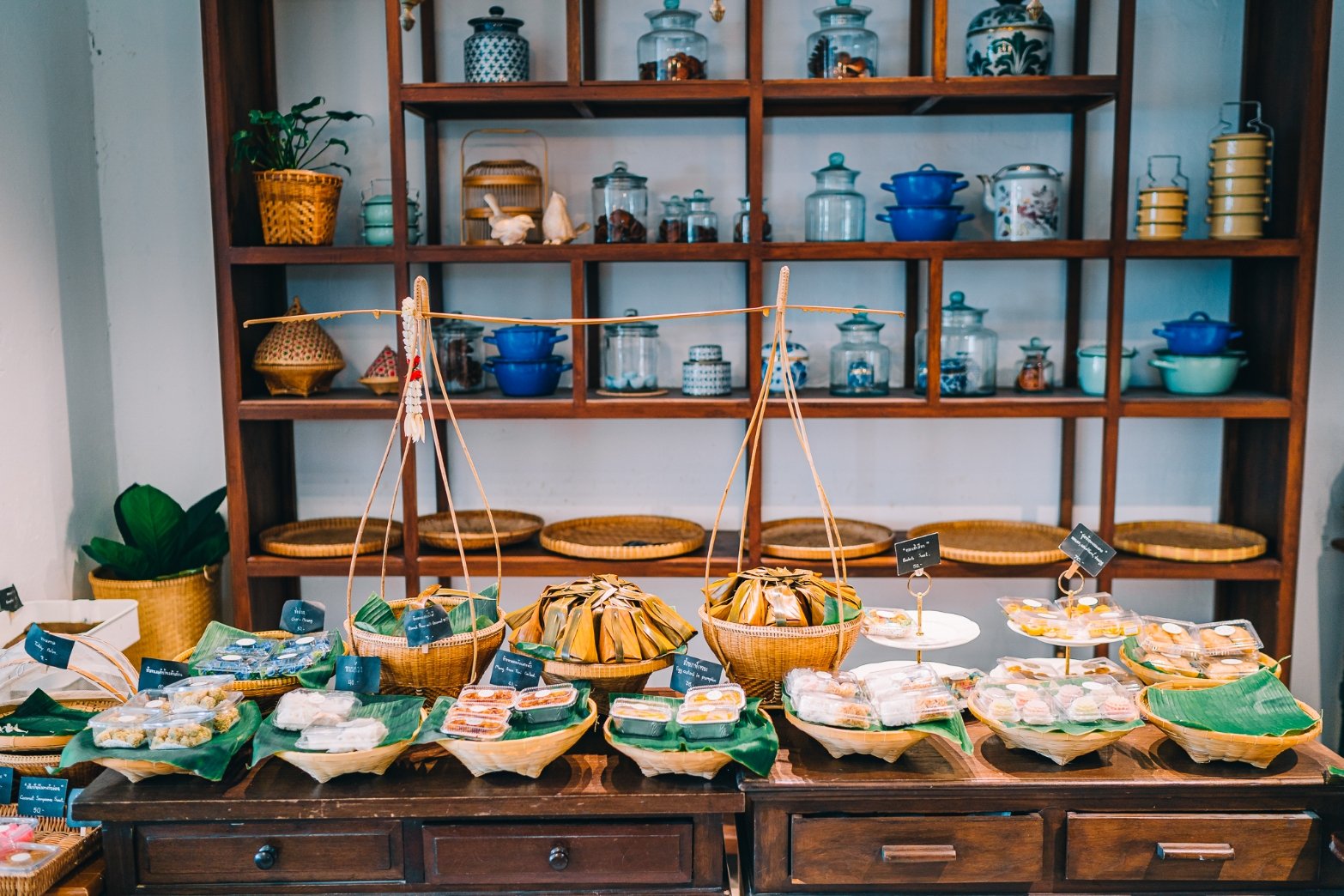 เสร็จของคาว เรามาตบท้ายต่อกันที่ร้านบ้านหนมที่ทุกคนอยากลิ้มลอง ถ้ามาวันหยุด บอกเลยหมดอดกินแน่นอน ที่ร้านนอกจากมีขนมแล้วยังมีกาแฟไว้คอยบริการ โดยเฉพาะกาแฟเมนูเด่นๆ ของร้าน ไพลินคอฟฟี่ ที่ผสมกาแฟกับขนมไทยได้เข้ากันมาก นอกจากนั้นก็มีขนมไทยประดิษฐ์ประดอยน่ารักกระจุ๋มกระจิ๋มไว้ให้เลือกอีกหลากหลายอย่าง ไม่ว่าจะเป็นทองหยิบ กระเช้าสีดา หยกมณี มีให้ได้ลอง เราลองชิมกันอย่างละ 2 ชุดแทบจะหมดร้านเลย..เป็นอันเสร็จเรียบร้อยสำหรับของหวาน