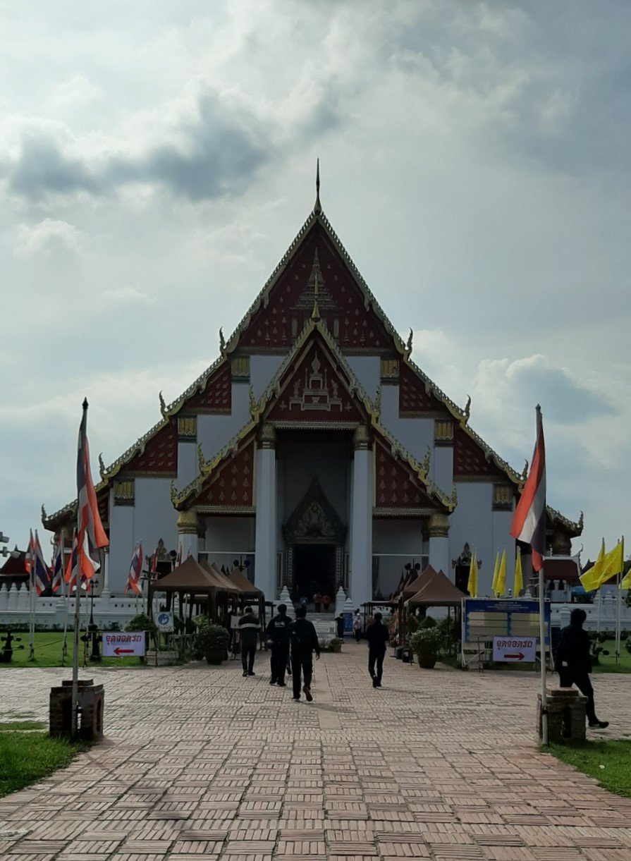 วิหารมงคลบพิตร ประดิษฐานพระพุทธรูปขนาดใหญ่ปางมารวิชัย เข้าไปกราบนมัสการเพื่อเป็นสิริมงคล และเดินเล่นพักผ่อนก่อนเดินทางต่อ