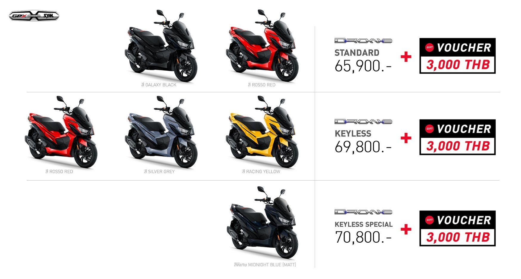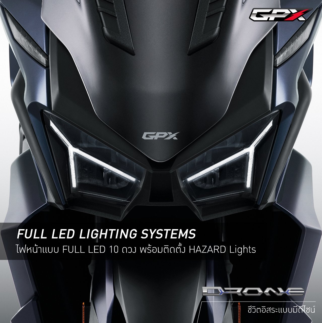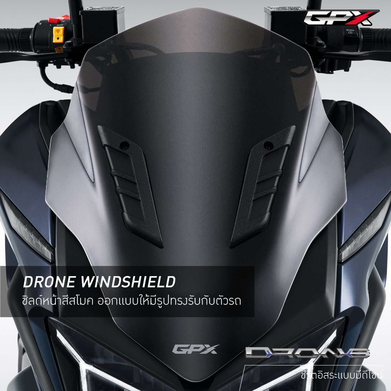 ล่าสุด GPX ได้เปิดตัวรถรุ่น ‘DRONE’ อย่างเป็นทางการ เป็นที่แรกของโลก ในรูปแบบ Stream Live ผ่านช่องทางออนไลน์ของ GPX THAILAND เป็นที่เรียบร้อยแล้ว กับรูปโฉมที่หลายๆคนโดนใจ ด้วยการออกแบบมาให้มีความพรีเมียมผสมผสานกับความสปอร์ต เน้นการเดินเส้นสายตัวรถที่เฉียบคม ให้อารมณ์ความดุดัน
