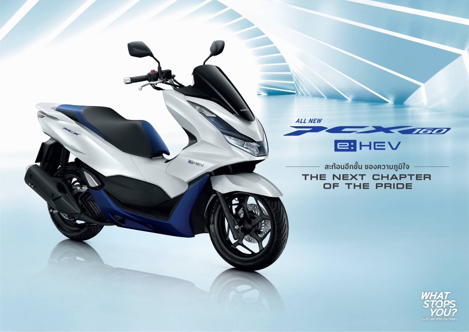 All New Honda PCX160 ยังมีรุ่นพิเศษที่มาพร้อมเทคโนโลยี e:HEV หรือเทคโนโลยีการขับเคลื่อนที่นำระบบมอเตอร์ไฟฟ้า ใช้พลังงานจากแบตเตอรี่แบบลิเธียม-ไอออน มาเสริมกำลังร่วมกับครื่องยนต์ eSP+ 4 วาล์ว 157 ซีซี ช่วยเพิ่มอัตราเร่งในช่วงออกตัวและต้องการใช้ความเร็ว ขับขี่สนุกด้วย Riding Mode เลือกได้ 2 โหมด ได้แก่ โหมดปกติ (D Mode) และ โหมดสปอร์ต (S Mode) ที่พร้อมมอบประสบการณ์ที่เร้าใจมากขึ้น