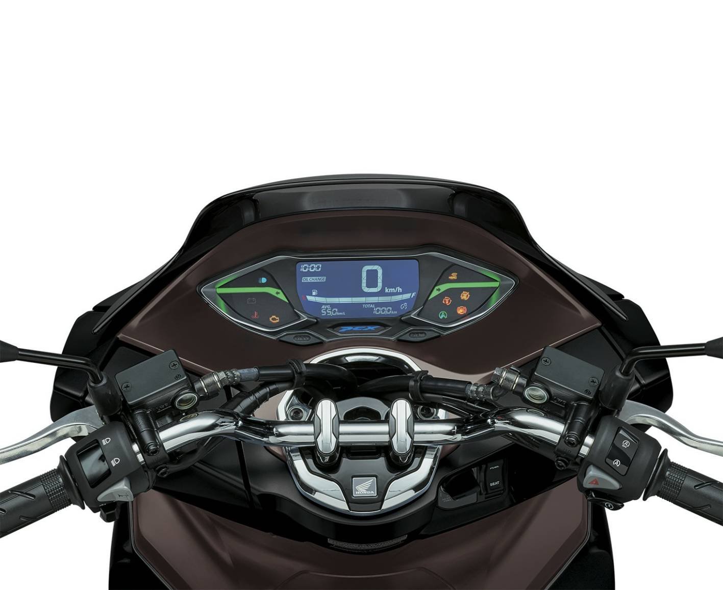 All New Honda PCX160 มาพร้อมแผงหน้าปัดแบบ Full Digital Speedometer แสดงข้อมูลชัดเจนครบถ้วนทุกฟังก์ชัน เพิ่มความสบายให้การขับขี่ด้วยชุดยางรองแฮนด์บาร์ใหม่ช่วยลดแรงสั่นสะเทือนได้ดียิ่งขึ้น