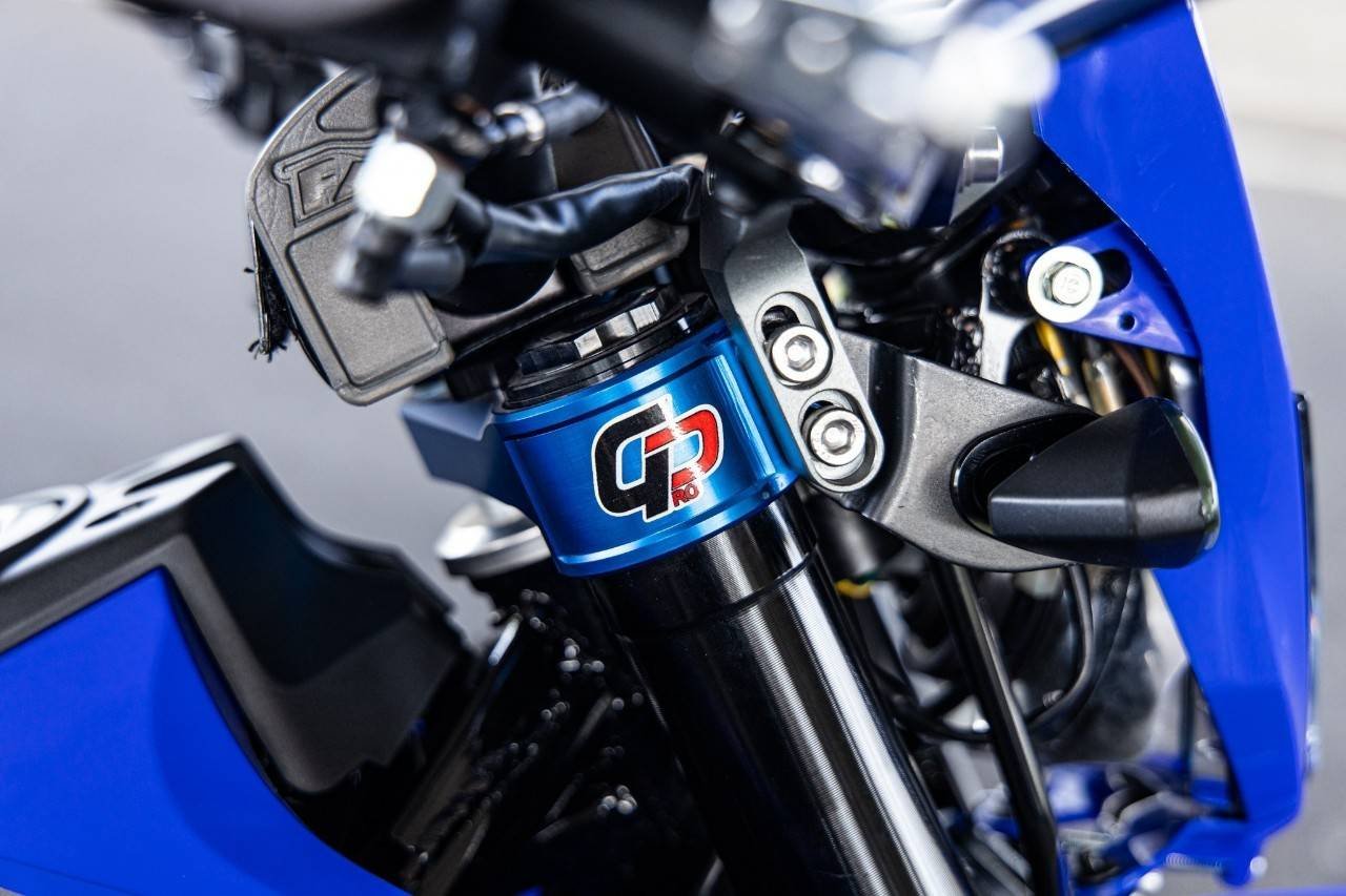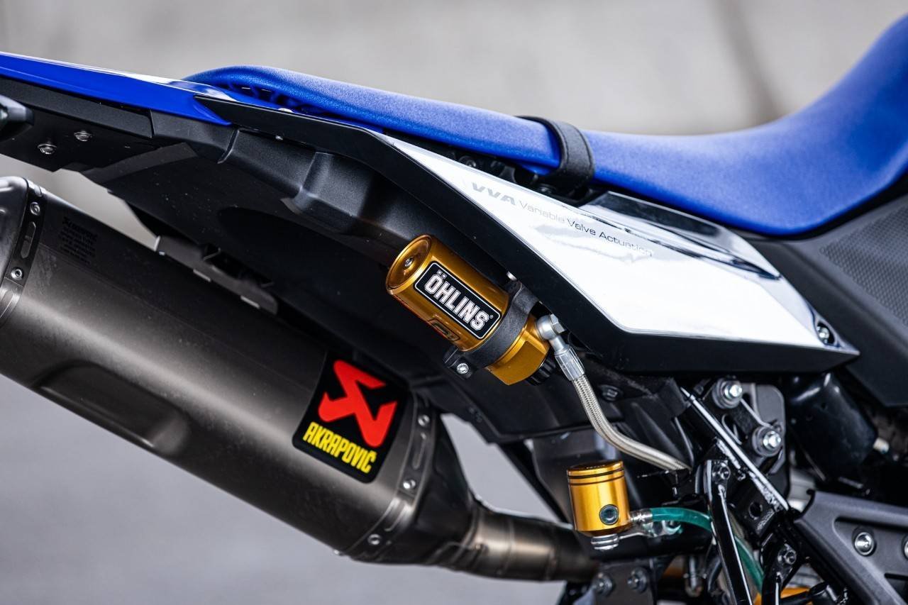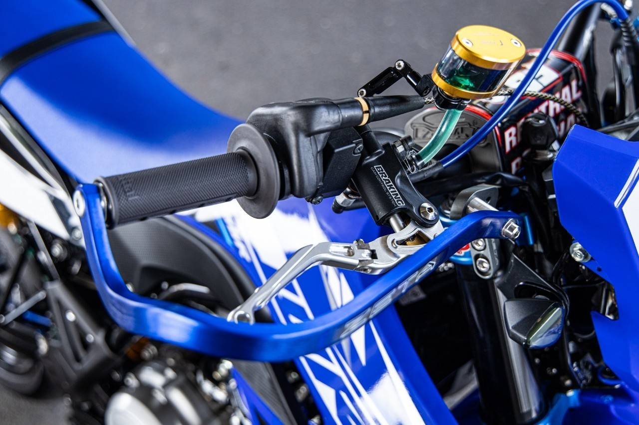 เริ่มจากทางด้านหน้ารถ กันที่ระบบกันสะเทือนกันก่อนเลยครับ ทำการยกชุดโช้คหน้า รวมถึงแผงคอเดิมออกทั้งหมด แล้วจัดการติดตั้งแผงคออลูมิเนียม CNC ยกชุดทั้งแผงคอบนและล่าง จากค่าย G Pro เข้าไป จับเซ็ทคู่กับโช้คอัพหน้าที่เปลี่ยนเป็นโช้คแบบ Up Side Down พร้อมโมดิฟายสปริงโช้คแต่ง และตัวปรับโช้คเป็นของ Ohlins ส่วนด้านหลังจัดให้เข้าชุดกันโดยเปลี่ยนสวิงอาร์มเป็นแบบอลูมิเนียมขึ้นรูป พร้อมโช้คหลังแบรนด์ Ohlins แบบแยกซับแท้งค์ ปรับค่าได้เต็มระบบ ต่อที่ตัวแฮนด์เพิ่มความแกร่งและบึกบึนมากขึ้นด้วยแฮนด์ Fatbar ตัวท๊อปขนาด 36 มิล จากค่าย Renthal มาพร้อมนวมแฮนด์สไตล์รถแข่ง ประกับคันเร่งเปลี่ยนเป็นประกับทดรอบแบบลูกปืนจากค่าย Domino ปลอกแฮนด์ Renthal พร้อมเสริมการ์ดแฮนด์อลูมิเนียมจากค่าย Zeta พร้อมตัวยก การ์ดแฮนด์จาก Zeta เช่นเดียวกัน เสริมอีกนิดที่ไฟเลี้ยวทั้งด้านหน้า และด้านหลังเลือกใช้เป็นไฟเลี้ยว LED ทรงสามเหลี่ยม ส่วนไฟท้ายแบบ LED พร้อมแป้นยึดป้ายทะเบียนอลูมิเนียม เป็นของแต่งตรงรุ่น WR155 ของคนไทย ในแบรนด์ SRC