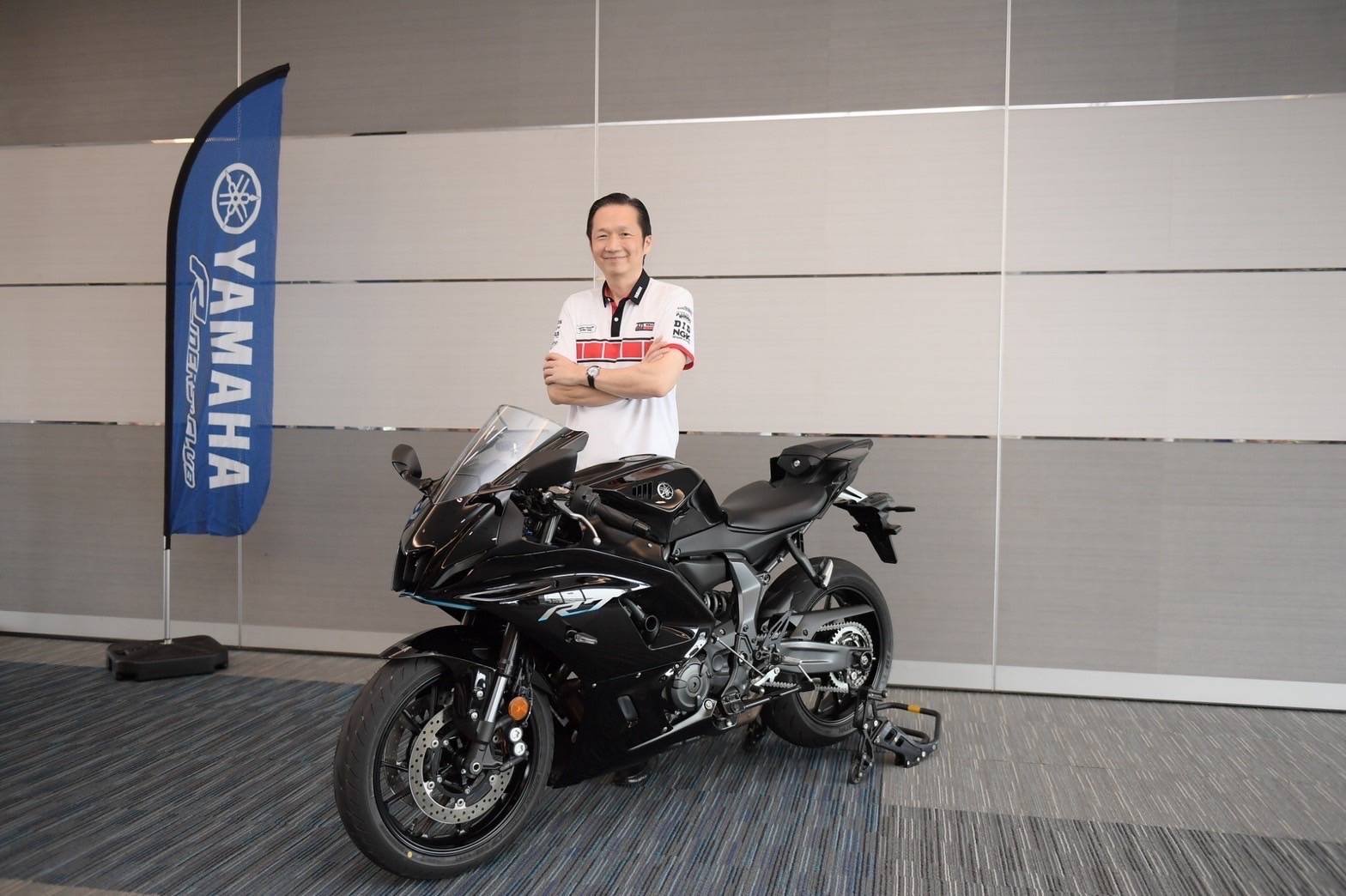 TYM : อยากจะพูดถึงพื้นฐานก่อนเรื่องกลุ่มเป้าหมายของ R7 จากที่ประสบความสำเร็จเรื่อง R6 มาทั้งหมดนะครับ R7 เราวางตำแหน่งสินค้าไว้ว่าหลักๆ มี 3 กลุ่มนะครับ กลุ่มแรกคือคนที่อยากเซ็ทอัพเป็นบิ๊กไบค์ กลุ่มที่สองคือคนที่ขี่เรซซิ่งอยู่แล้วๆ อยากจะเทียบอีกแบรนด์มาบ้าง กลุ่มที่สามคือกลุ่มที่อยากได้ทั้งคู่ คืออยากจะมีระบบการนั่งเรซซิ่งและก็การขับขี่ท่องเที่ยวไปด้วย คือตรงนี้เป็นรถที่ตอบสนอง DNA ทางด้านรถเรซซิ่งและก็รถที่ขี่สนุกสนาน ด้วยทัวริ่งได้ด้วย ตรงนี้ก็คิดว่าเป็นกลุ่มที่รถจะสามารถทำการตลาดได้ ส่วน R6, R1 จะเป็น Top Class เราตั้งใจทำรุ่นนี้ออกมาเป็นกลุ่มที่เจาะทั้งสามกลุ่มนี้ แล้วก็ราคาจับต้องได้ด้วย 332,000 บาท คิดว่าคุ้มค่านะครับก็คิดว่าตอบโจทย์ตรงนี้ได้ แล้วก็เราก็รู้จากการสัมผัสลูกค้ามาอยู่เรื่อยๆ นะครับว่า กลุ่มนี้เป็นกลุ่มที่ไม่ได้ซื้อรถแล้วก็ขี่ด้วยตัวเองคนเดียว อยากได้ประสบการณ์หลายๆ อย่าง ไม่ว่าจะเป็นการฝึกขับขี่ซึ่งทำได้ดีในเรื่องของ YRA สอนเรื่องเทคนิคการขับขี่แบบเรซซิ่งด้วย ก็มีเรื่องเบสิค แล้วก็แอดวานซ์ให้ด้วย และคนที่เข้ามาสัมผัสกับหลักสูตรของเรา แล้วก็อีกกลุ่มหนึ่งคือ กลุ่มที่ชอบท่องเที่ยวไปด้วยนะ เราก็จะมีจัดกลุ่มท่องเที่ยวที่จะมีทริปต่างๆ ที่จะนำเสนอขึ้นมา ก็เชื่อว่าจะชัดเจนและขยายฐานได้ดี