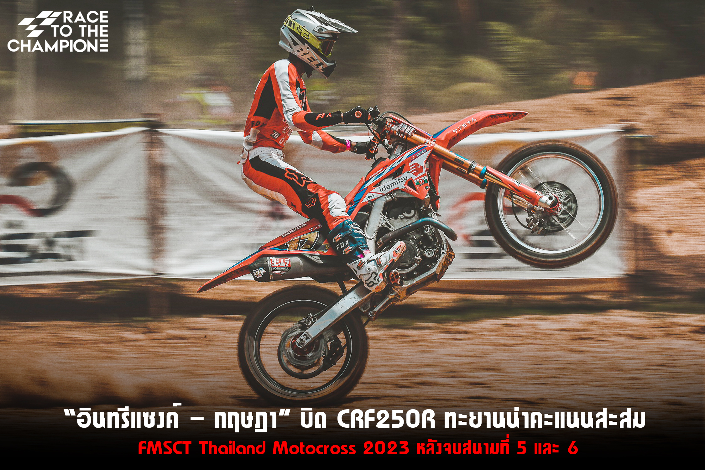 จบการแข่งขัน FMSCT Thailand Motocross 2023 สนามที่ 5 และสนามที่ 6 “อินทรีแซงค์ – กฤษฎา” ทะยานขึ้นนำในตารางคะแนนสะสมที่ 83 คะแนน มุ่งเดินหน้าสู่การไล่ล่าแชมป์ประจำปีสมัยที่ 5 ต่อไป