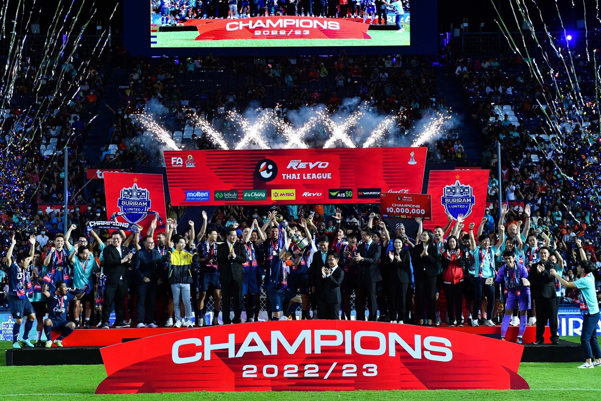 นายพงศธร เอื้อมงคลชัย รองประธานกรรมการบริหาร นายภาณุพล กิตติคำรณ รองผู้จัดการใหญ่ด้านการขาย และการตลาด พร้อมคณะผู้บริหารระดับสูง บริษัท ไทยยามาฮ่ามอเตอร์ จำกัด ร่วมกันมอบช่อดอกไม้แสดงความยินดีกับ นายเนวิน ชิดชอบ ประธานสโมสร บุรีรัมย์ ยูไนเต็ด ในการฉลองการคว้าแชมป์ ไทยลีก ประจำฤดูกาล 2565 - 2566 ได้เป็นสมัยที่ 8 หลังเปิดบ้านรับการมาเยือนของสโมสร นครราชสีมา มาสด้าเอฟซี ก่อนคว้าชัยชนะส่งท้ายด้วยสกอร์ 4 – 0 ส่งผลให้คะแนนรวมทั้งสิ้น 74 คะแนน จากการลงสนามทั้งสิ้น 30 นัด ชนะ 23 เสมอ 5 แพ้ 2 พร้อมคว้าสิทธิ์ไปเล่นฟุตบอลสโมสรชิงแชมป์เอเชียในรายการ เอเอฟซี แชมเปี้ยนลีก ฤดูการ 2022/2023 รอบแบ่งกลุ่มแบบอัตโนมัติ
