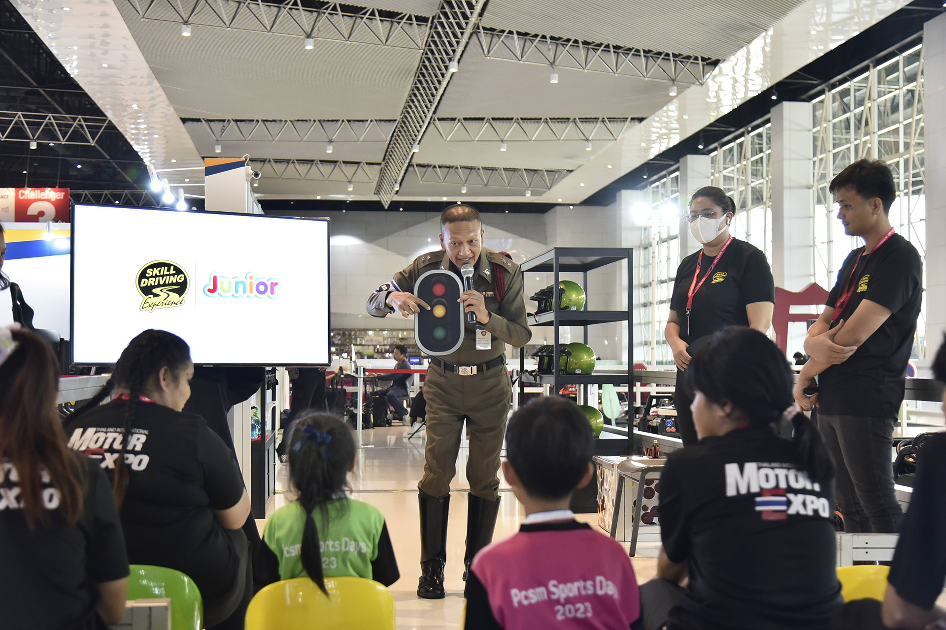 SKILL DRIVING EXPERIENCE JUNIOR บริเวณ ลอบบี ชาลเลนเจอร์ เปิดโอกาสให้เด็กอายุ 4-6 ปี ความสูงไม่เกิน 120 ซม. น้ำหนักไม่เกิน 30 กก. ได้เรียนรู้กฎจราจรเบื้องต้น ชมวีดีทัศน์จราจร ขับรถยนต์ไฟฟ้าสำหรับเด็ก ในถนนจำลอง ที่ติดตั้งป้าย และเครื่องหมายจราจรประเภทต่างๆ