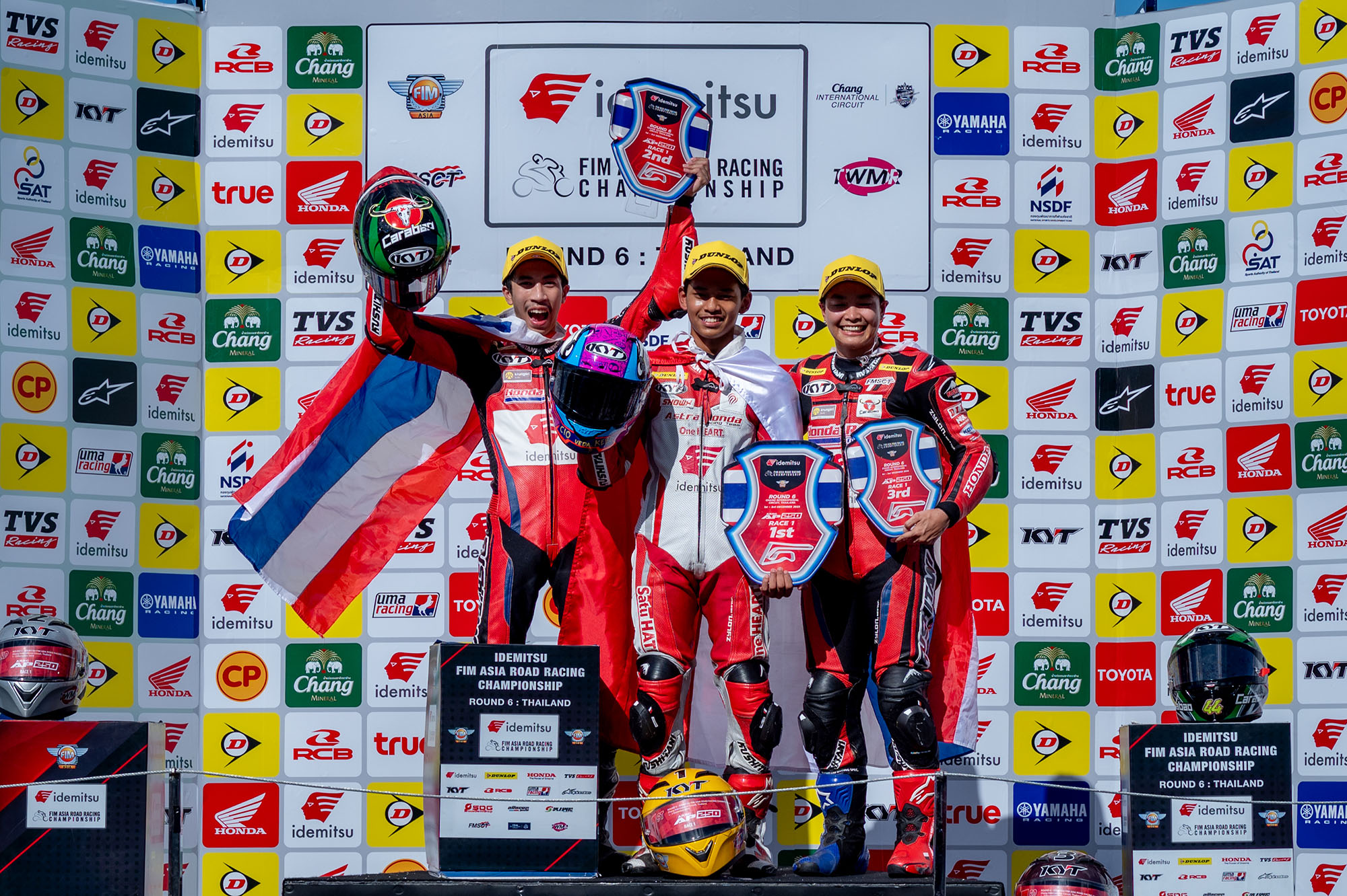 เอเชีย โร้ด เรซซิ่ง แชมเปียนชิพ 2023 ระเบิดความมันส์สนามปิดฤดูกาลอย่างดุเดือด นักบิดไทยสร้างผลงานกระหึ่มเรซที่ 1 กอดคอขึ้นโพเดียมถึง 3 รุ่น นำโดย "แสตมป์" อภิวัฒน์ วงศ์ธนานนท์ จาก ยามาฮ่า เจน บลู เรซซิ่ง ทีม เอเชียน คว้าอันดับ 2 ในรุ่น ซูเปอร์สปอร์ต 600 ซีซี ขณะ "ข้าวกล้อง" จักรีภัทร พฤฒิสาร ดาวรุ่งจาก ฮอนด้า เรซซิ่ง ไทยแลนด์ ควงทีมเมทรุ่นพี่ "มุกข์" มุกข์ลดา สารพืช บิดคว้าอันดับ 2-3 ในรุ่น เอเชีย โปรดักชั่น 250 ซีซี ด้าน "เอ้" วรพงศ์ มาลาหวล โชว์ความเก๋าซิวท็อป 3 รุ่นทีวีเอส วัน เมค แชมเปียนชิพ ที่ สนามช้าง อินเตอร์เนชั่นแนล เซอร์กิต จ.บุรีรัมย์