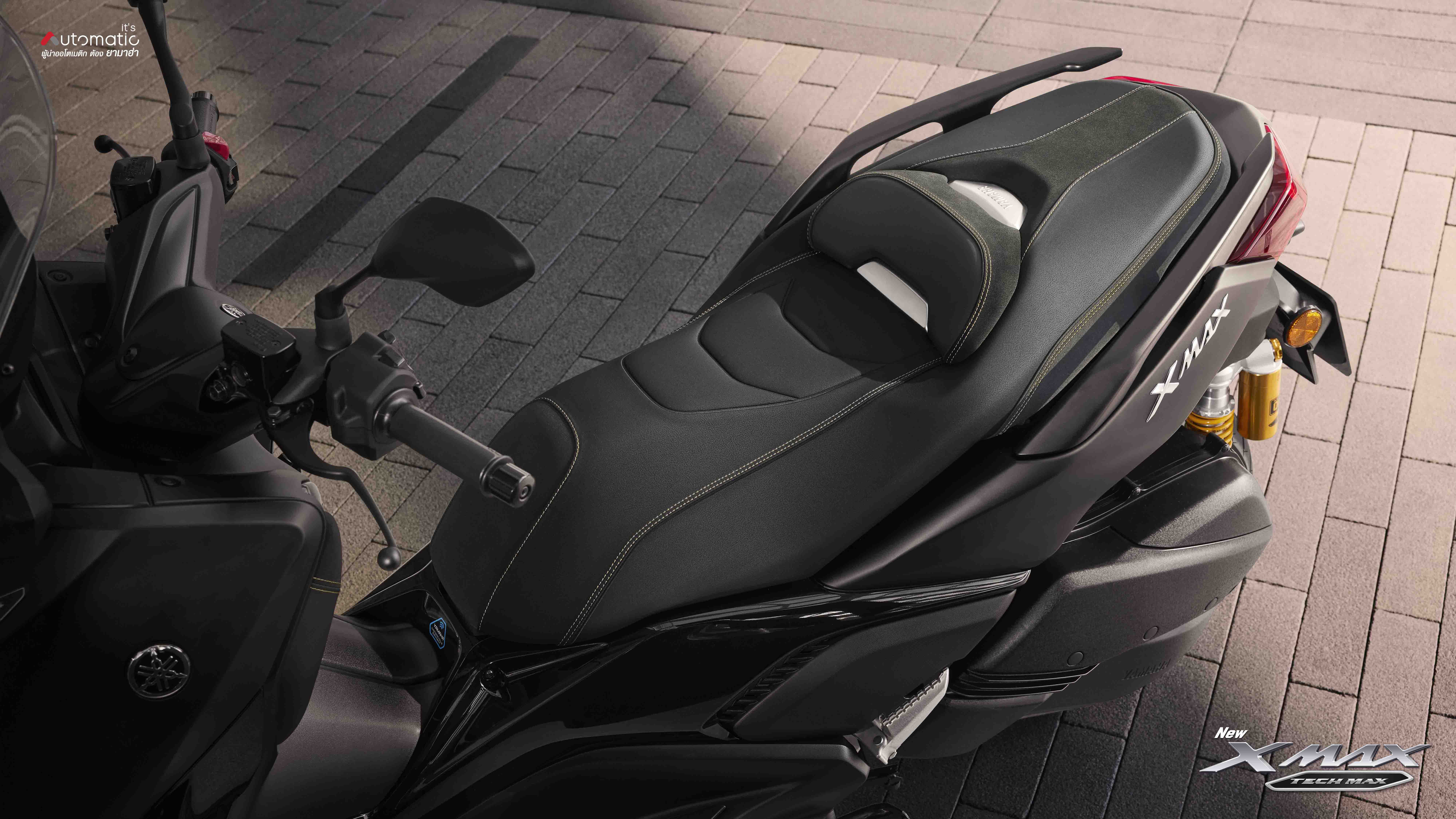“NEW XMAX Tech MAX” ยังเหนือระดับด้วย EXCLUSIVE Tech MAX SPECIAL SEAT เบาะนั่งดีไซน์พิเศษ กระชับรับกับสรีระทุกการเคลื่อนไหว มั่นใจในการขับขี่, Tech MAX EMBLEM สัญลักษณ์เฉพาะตัว แสดงถึงความพิเศษ บ่งบอกตัวตนที่สุด MAX, Tech MAX FOOT PLATES ชุดรองพักเท้าด้านหน้าอะลูมิเนียมพิเศษสุดพรีเมียม แข็งแรง เพิ่มความโดดเด่นขึ้นอีกขั้น, Tech MAX HAND GRIPS ปลอกแฮนด์ดีไซน์พิเศษสำหรับ Tech MAX เพิ่มความกระชับในการควบคุม และ Tech MAX COVER FRONT LUGGAGE ฝาปิดช่องเก็บของหุ้มวัสดุพิเศษสุดพรีเมียม เพิ่มความหรูหราไปอีกระดับ