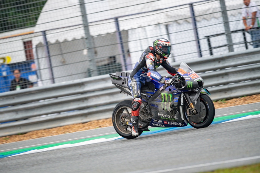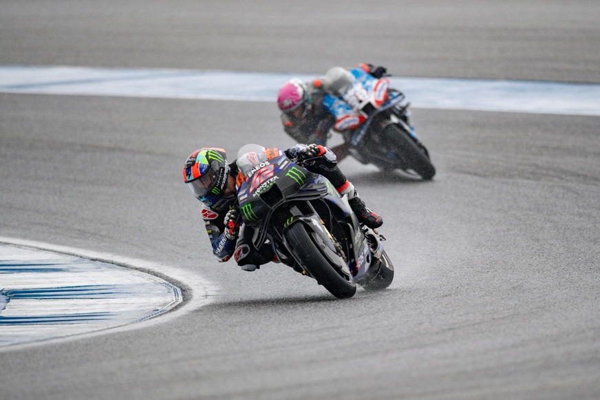 การแข่งขันรอบ “เมนกรังด์ปรีซ์” ของศึก พีที กรังด์ปรีซ์ ออฟ ไทยแลนด์ มีขึ้นเมื่อช่วงบ่ายวันอาทิตย์ที่ผ่านมา ซึ่งก่อนแข่งมีฝนตกลงมาส่งผลให้ต้องดวลกันในสภาพแทร็กเปียกตลอดทั้งเรซ โดย กวาร์ตาราโร นักบิดเฟรนช์แชมป์โลก 1 สมัย เจ้าของหมายเลข 20 ได้ออกตัวจากกริดที่ 6 ส่วน รินส์ ทีมเมทชาวสเแปนิช เจ้าของหมายเลข 42 เริ่มเกมจากกริดที่ 17