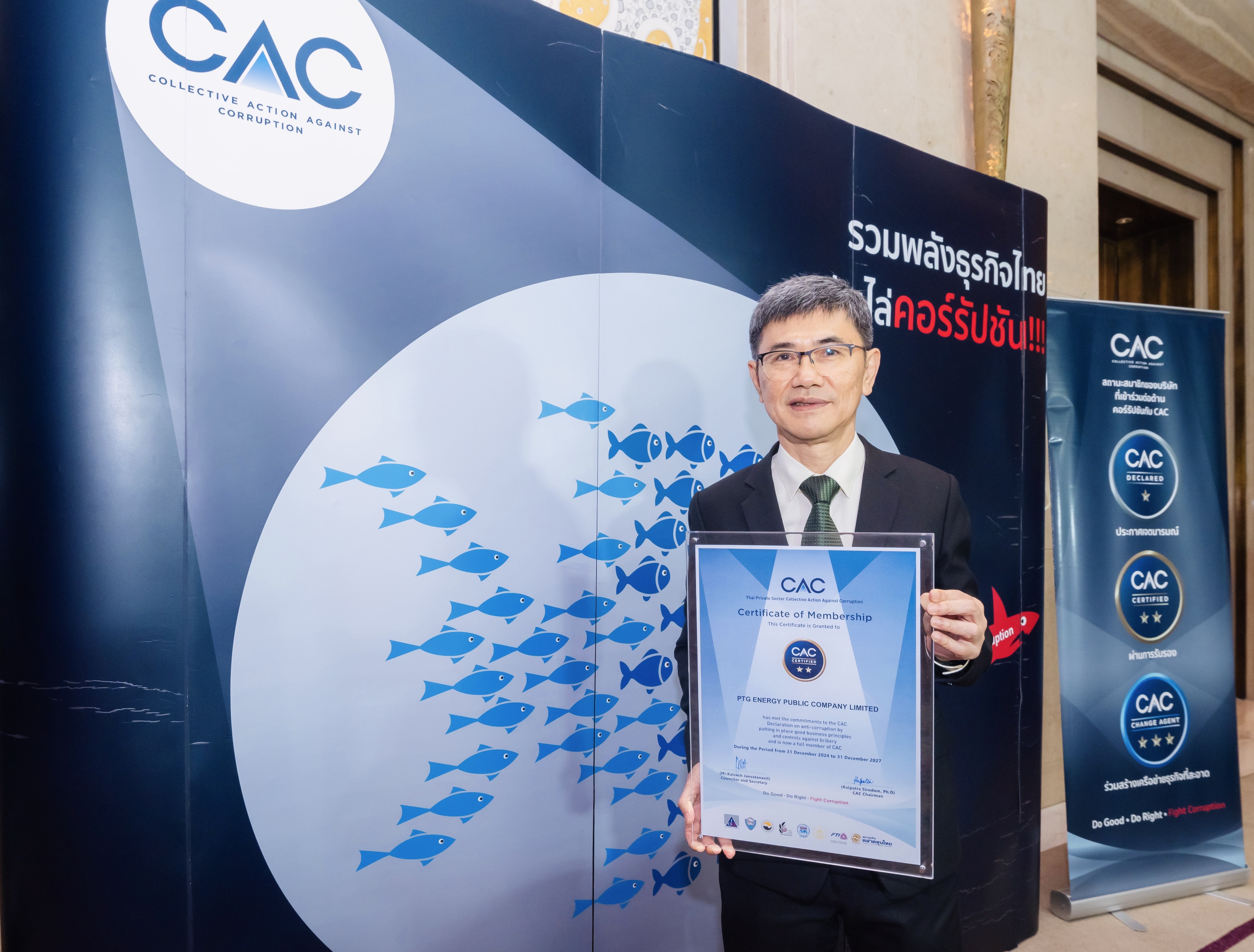 ซึ่งการได้รับการรับรองดังกล่าวเป็นการแสดงออกถึงความร่วมมือของพนักงาน PTG ในการปฏิบัติตามนโยบายต่อต้านการให้สินบนและการคอร์รัปชันของกลุ่มพีทีจี เอ็นเนอยี ตอกย้ำการเป็นองค์กรโปร่งใส มุ่งมั่นดำเนินธุรกิจภายใต้โครงสร้างการกำกับดูแลกิจการที่ดีตามมาตรฐานสากล งานดังกล่าวจัดขึ้น ณ โรงแรมสยามเคมปินสกี้ กรุงเทพฯ เมื่อเร็วๆ นี้