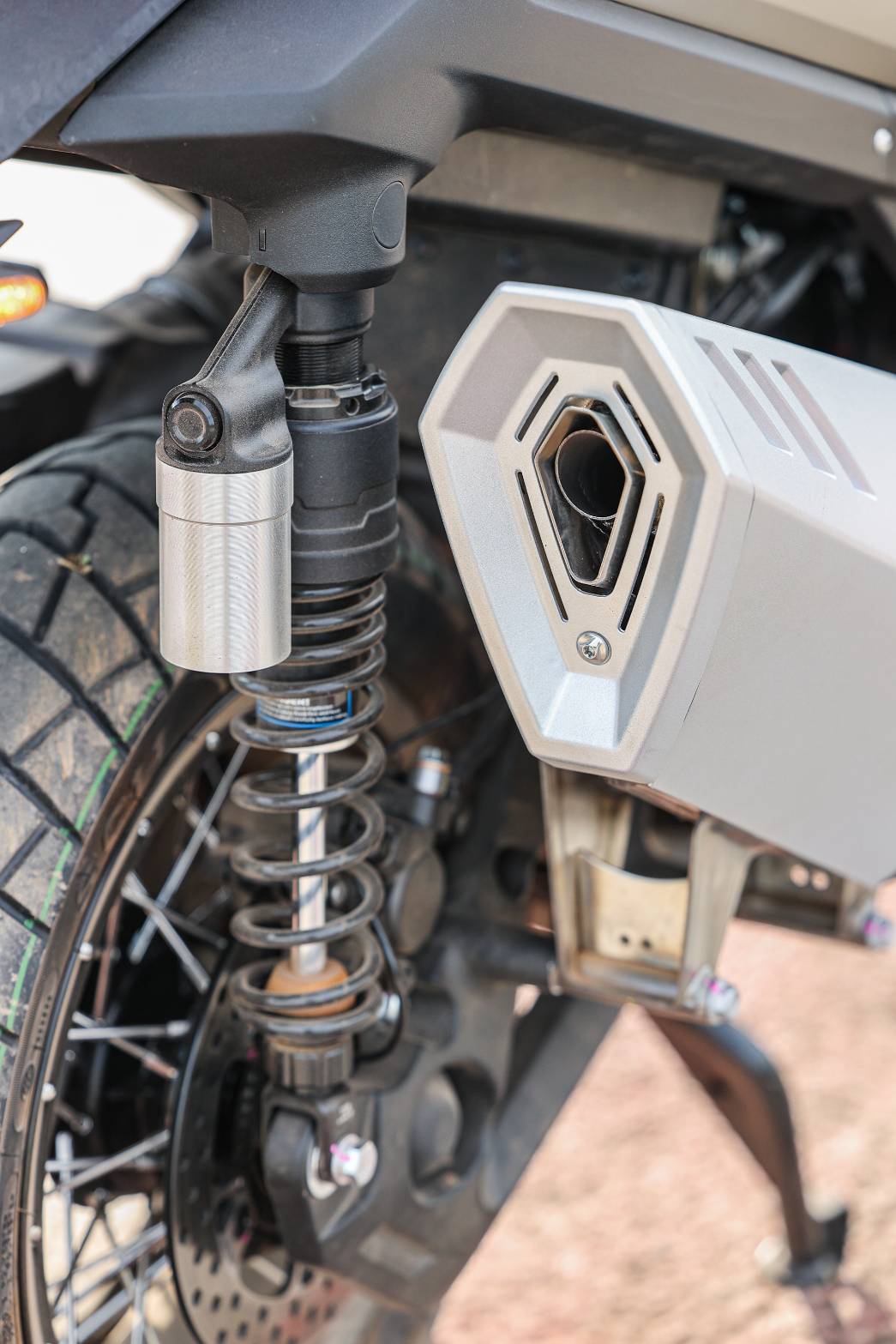 สะดวกสบายด้วยพักเท้า 3 ชิ้น (ให้มาทำไมเยอะแยะ) เพราะเขาใส่ใจ ให้ผู้ขับขี่ ขับรถได้อย่างสนุกสนาน โดยผู้ขับขี่จะมีพักเท้า 2 อัน อันแรกจะเป็นฟุตบอท ที่วางเท้าด้านหน้า วางเท้าได้เต็มที่สะดวกสบายเวลาเดินทางไกลในทางดำ อีกหนึ่งที่พักเท้า ทัดไปข้างหลังเล็กนอยไว้สำหรับให้ผู้ขับขี่ใช้เมื่อขันขี่ในทางฝุ่น หรือแบบต้องยืนลุย พักเท้าอันที่ 3 เหนือขึ้นไปหน่อย ไว้ให้สำหรับ ผู้ซ้อนท้าย ซึ่งพักเท้า 2 อันนี้ สามารถถอดยางรองออก ใช้กับรองเท้าแบบวิบากก็ได้ จะเป็นหยักๆกันลื่น เมื่อต้องใช้กับการขับขี่ในทางฝุ่น หรือต้องการยืนขับ จะช่วยกันลื่นได้ดีทีเดียวครับ ให้มาขนาดนี้ในราคาแสนปลายๆ เป็นราคาที่ผู้ใช้สามารถจับต้องได้ นี่ไงครับ สมชื่อรถขนขิงมั้ยครับ