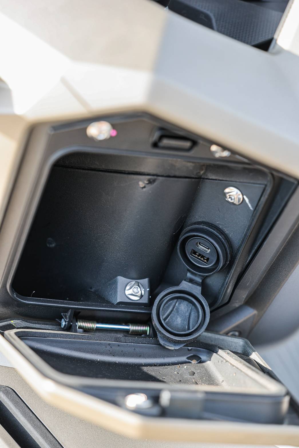 ZONTES 368G ยังให้ความใส่ใจกับจุดต่างๆ เพื่ออำนวยความสะดวกกันผู้ขับขี่เช่น ที่บังลมปรับได้ 5 ระดัง โช้คหน้าหัวกลับ แบบปรับได้ เพียงไขขวงปากแบบตัวเดียว โช้คหลังก็สามารถปรับได้เช่นกัน โดยใต้เบาะจะมีเครื่องมือปรับตั้งมาให้ครบ พื้นที่ใต้เบาะใหญ่พอใส่หมวกกันน็อคแบบโมตาลได้สบาย และยังมีโช้คค่ำเบาะติดตั้งมาให้เพื่อไม่ใก้เบาะหล่นโดนหัวเวลาเก็ยของ แถมำฟส่องใต้เบาะมาให้อีกหนึ่งดวง ไม่เพียงเท่านั้นครับ ที่ชาร์ทไฟยังให้มาถึง 3 จุด 6 พอร์ท โดยแยกตามจุดต่างคือ จุดที่ 1 มี 2 พอร์ท ที่ด้านหน้าใต้จอ สำหรับใครที่ติดตั้ง GPS หรีอตัวน้ำทาง สามารถใช้ไฟจากตรงนี้ได้เลย จุดที่ 2 มี 2 พอร์ท ที่กล่องเก็บด้านหน้าซ้าย สำหรับอัปกรณ์ถ่ายภาพ หรือแอ็กชั่นแคม หรือโทรศัพท์ จุดที่ 3 มี 2 พอร์ท อยู่ที่ใต้เบาะ ไว้ชาร์ทเพาวเวอร์แบ็ค หรือโทรศัพท์ เรียกว่าจุใจไปเลยครับ