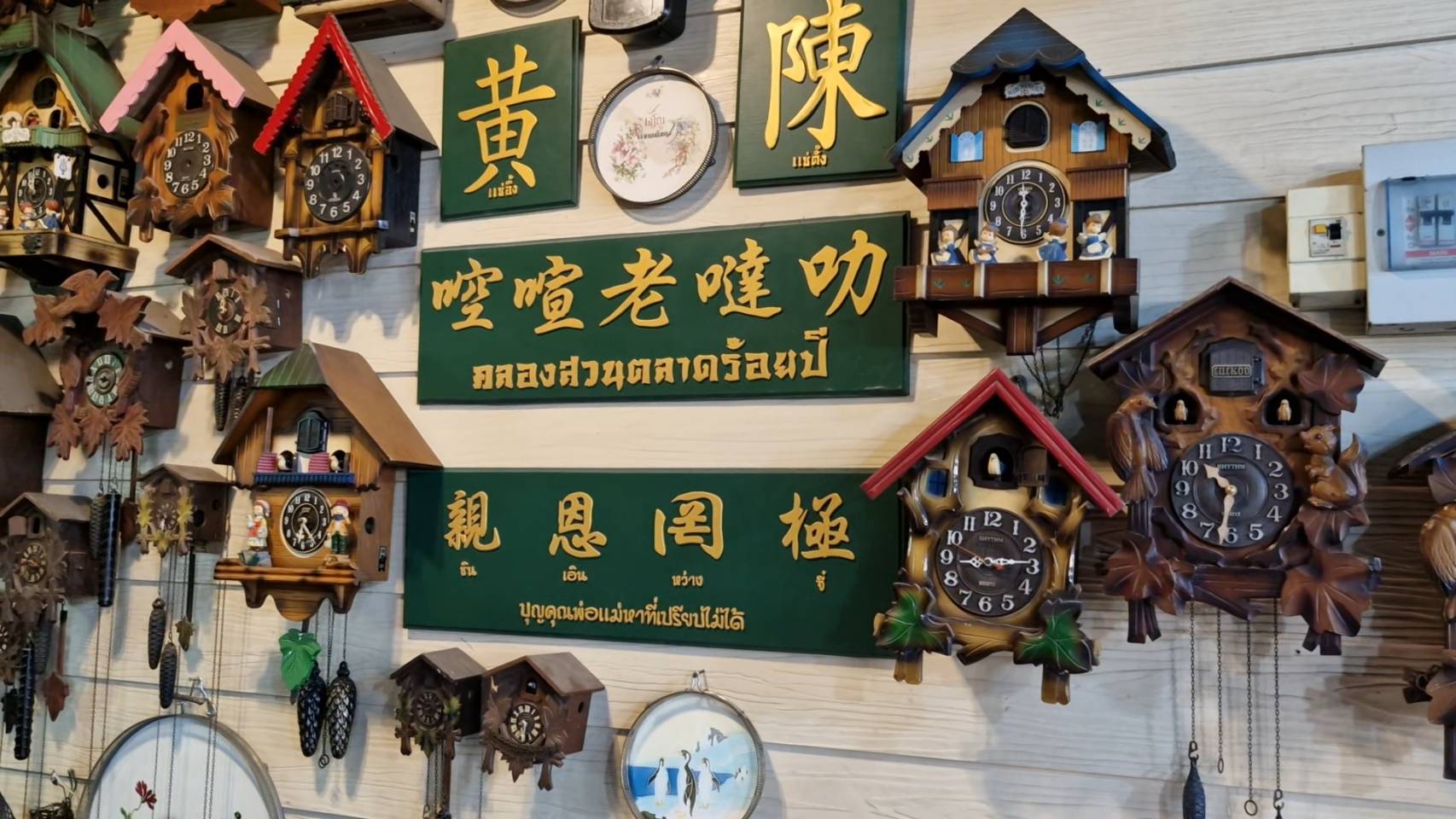 และรอบนี้ผมได้มีโอกาส เจอกับคุณตาท่านหนึ่ง ในบ้านที่เต็มไปด้วยนาฬิกาโบราณ แขวนอยู่เต็มผนังทั้งสองด้าน ที่หากคะเนจากสายตา ก็น่าจะมีเกือบ 100 เรือนได้ครับ ถามไปถามมาก็ได้รู้ว่า เป็นของสะสมของบรรพบุรุษที่ส่งต่อกันมาเรื่อยๆ ครับ อายุกว่า 200 ปีก็มี บ้างก็มาจากต่างประเทศวัสดุทำมือทุกชิ้น บ้างก็มาจากห้างร้านต่างๆ ที่พอนานๆ ไปก็ชำรุดเสียหายไปนอนกองอยู่ที่ร้านฯ ของเก่า ถ้าใครชมชอบของโบราณ ผมแนะนำว่าลองแวะไปที่ตลาดนี้ จะถูกใจแน่นอนครับ เพราะในบ้านหลังนี้ไม่ไดมีแต่นาฬิกาเท่านั้นนะครับ อยากให้ลองแวะไปดูด้วยตาจริงๆ ครับ