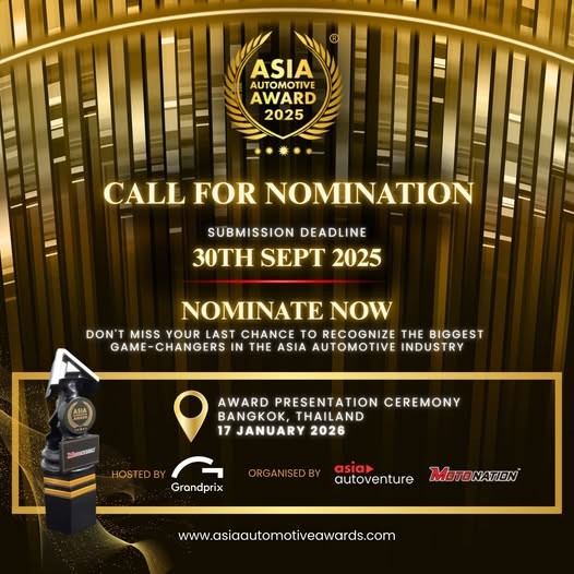 งานประกาศรางวัล Asia Automotive Award 2025 (ครั้งที่5) มีกำหนดการจัด งานในวันที่ 17 มกราคม 2569 สำหรับบริษัทที่สนใจเข้าร่วมเสนอชื่อเพื่อเข้ารับรางวัลในสาขาต่างๆ อาทิ ด้านนวัตกรรม (Innovation), ด้านความยั่งยืน (Sustainability), ด้านมอเตอร์สปอร์ต (Motorsport), ด้านผลิตภัณฑ์หลังการขาย (Aftermarket), ด้านความเป็นผู้นำ (Leadership) และ อื่นๆ รวมกว่า 11 สาขา สามารถส่งใบเสนอชื่อเข้าชิงรางวัลได้ที่ https://asiaautomotiveawards.com