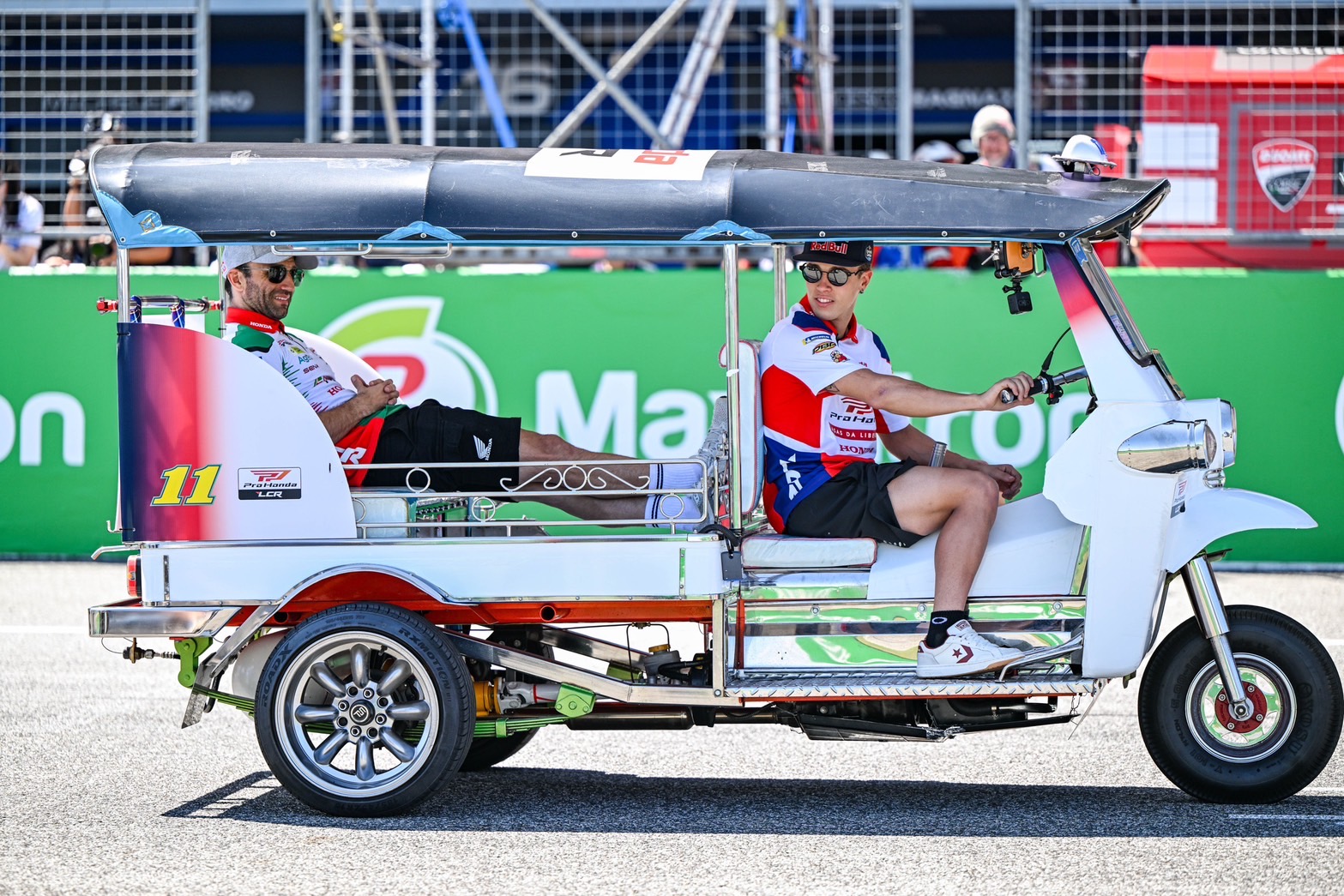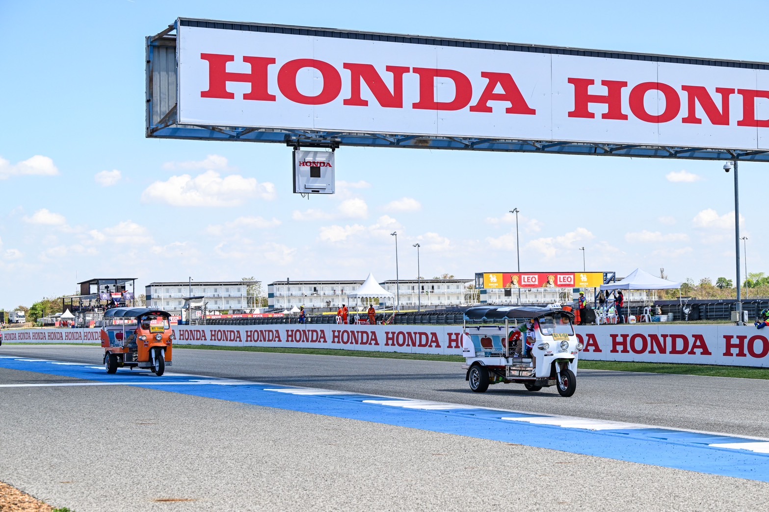 ทัพนักบิดฮอนด้าในศึก โมโตจีพี นำโดย “โจอัน เมียร์”, “ลูก้า มารินี”, “โยฮันน์ ซาร์โก” และ “ดิโอโก้ โมเรร่า” ร่วมโมเมนต์สุดฮาในกิจกรรม “ตุ๊กตุ๊ก ชาลเลนจ์” ที่นำเอานักบิดระดับโลกลงมาดวลความเร็วด้วย “รถตุ๊กตุ๊ก” ซอฟท์เพาเวอร์สุดทรงพลังของไทย แข่งขันในสนามช้าง อินเตอร์เนชั่นแนล เซอร์กิต จ.บุรีรัมย์ เรียกเสียงเฮกระหึ่มจากแฟนๆ ที่อัดแน่นทุกสแตนด์ และความบันเทิงเต็มขั้นที่ “ฮอนด้า สแตนด์” พร้อมถ่ายทอดความเป็นไทยสู่ทุกสายตาทั่วโลก ผ่านศึก โมโตจีพี 2026 สนามแรก รายการ “พีที กรังด์ปรีซ์ ออฟ ไทยแลนด์”