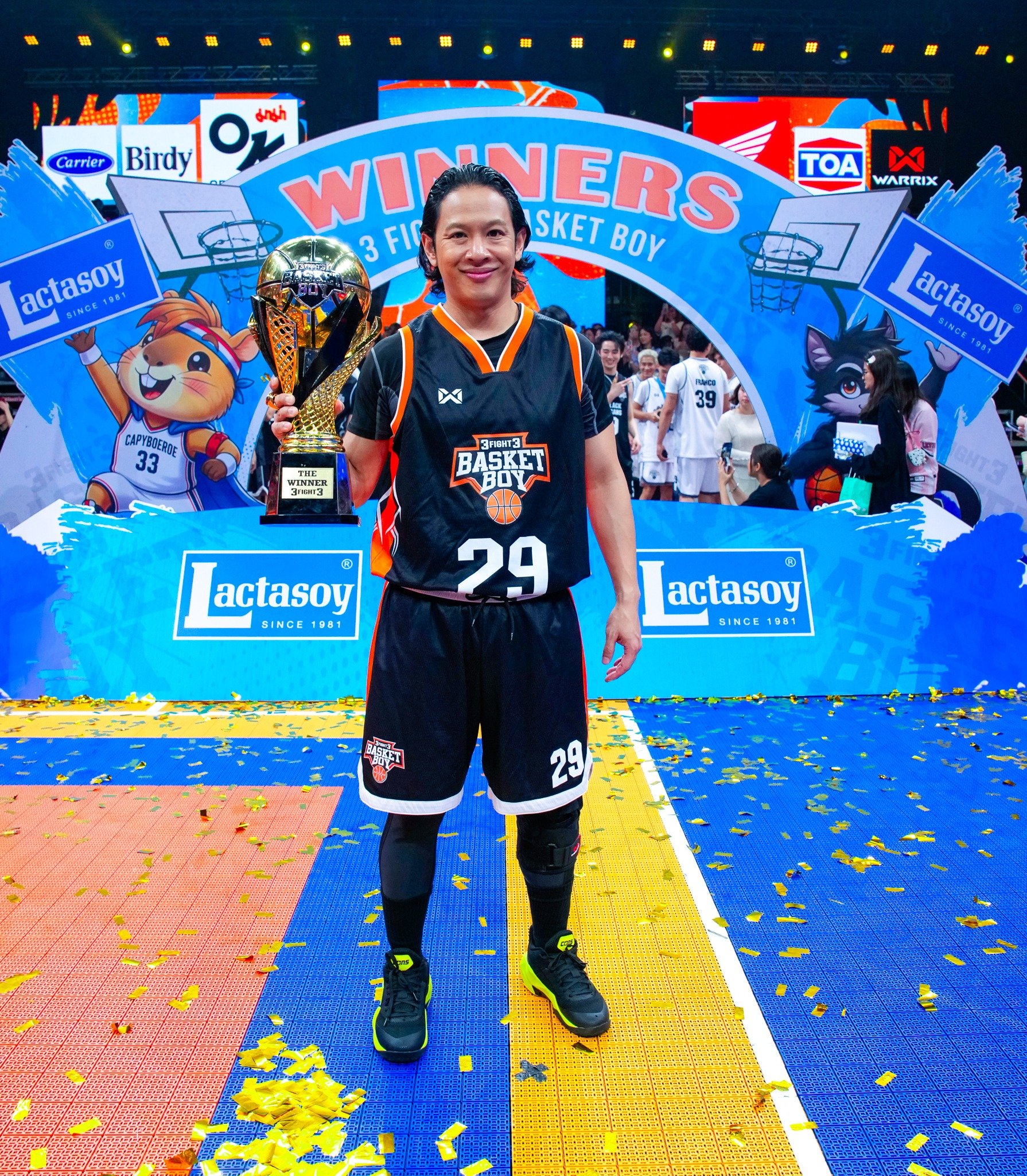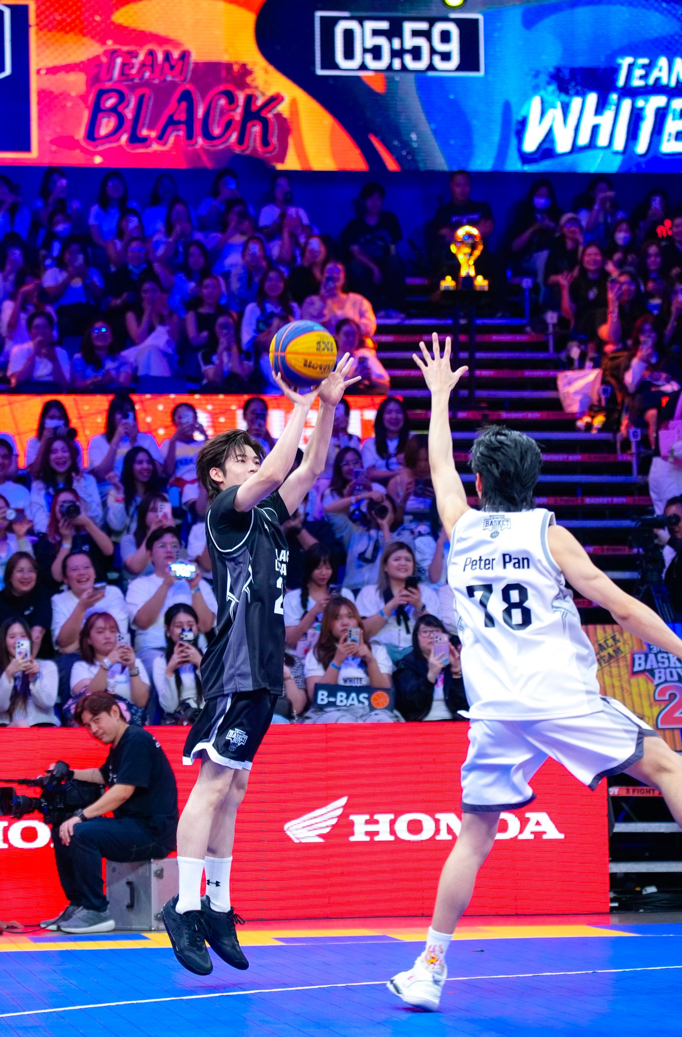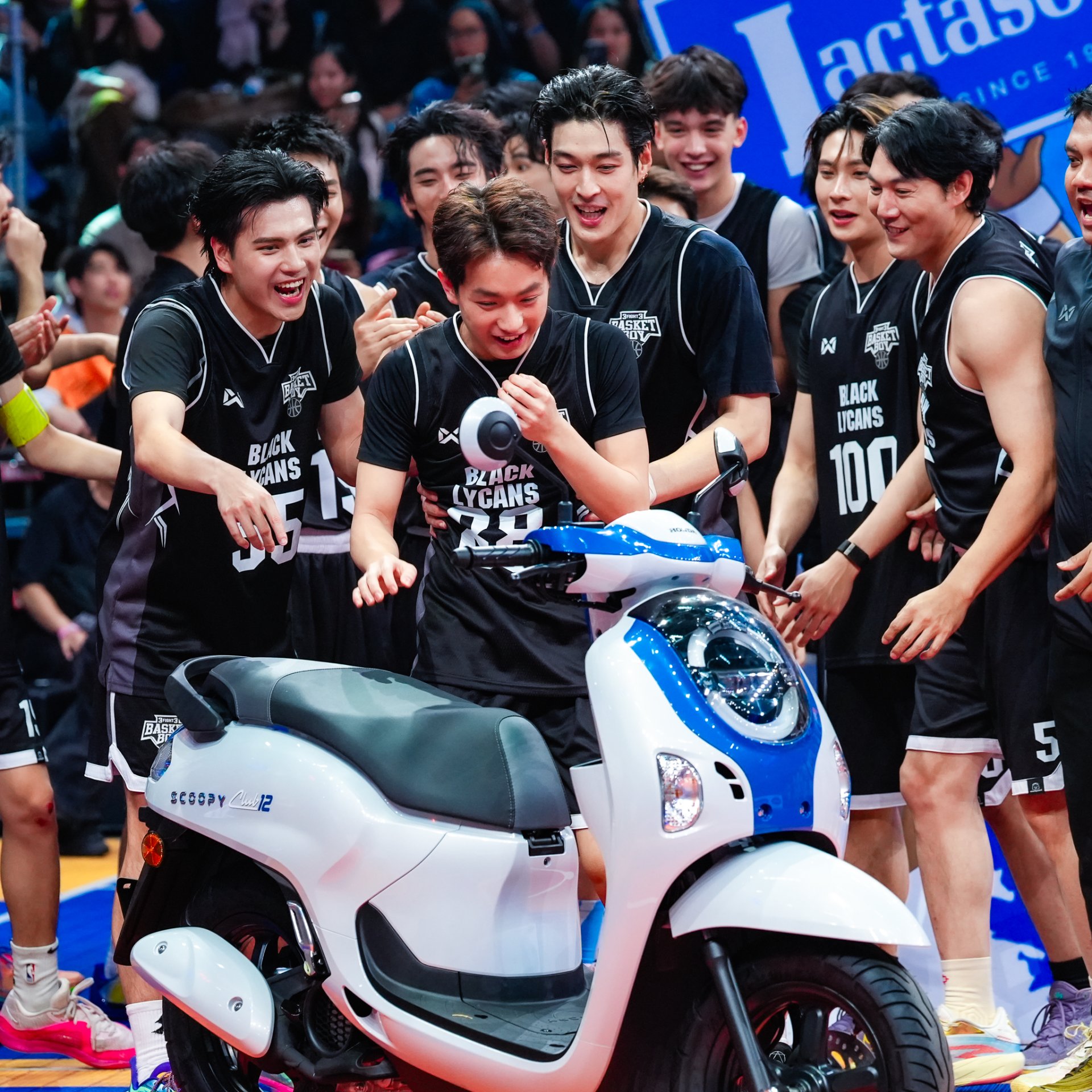 กันอย่างเข้มข้นตลอด 4 เดือน ท่ามกลางเกมการแข่งขันที่ดุเดือด ไม่มีใครยอมใคร พร้อมเสียงเชียร์กระหึ่มทั่วสนามและถ่ายทอดสดไปทั่วประเทศ ณ Workpoint Stadium เมื่อวันที่ 5 เมษายน 2569 ที่ผ่านมา โดยมี ดร.อารักษ์ พรประภา ประธานบริษัท ไทยฮอนด้า จำกัด เป็นผู้มอบรางวัลรถจักรยานยนต์ New Honda SCOOPY รุ่น Club12 ให้แก่ผู้ที่ได้รับรางวัล Top Fan Voted U23 Player พร้อมร่วมแสดงความยินดีกับ Black Team ที่สามารถคว้าแชมป์ “3FIGHT3 BASKET BOY Season” ไปครองได้สำเร็จในแมตช์ชิงชนะเลิศสุดเข้มข้น